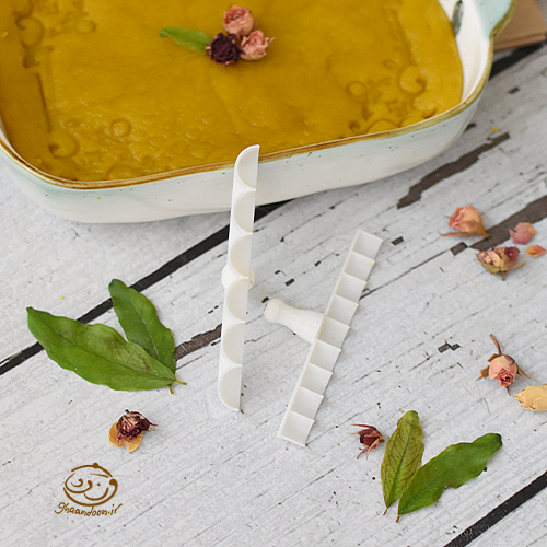 ۲ مهرحلوا (halva mold) با طرح هلالی مناسب حاشیه گذاری ، ابزاری کاربردی و زیبا برای تزئین حلوا ، شیرینی ها و کوکی های جذاب و حرفه ای.